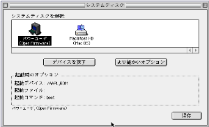 MacOS 8, MacOS 9 のコントロールパネルにある 「起動ディスク」 と何が違うかと言うと、 MacOS がなくても起動出来るような設定も出来るということです。