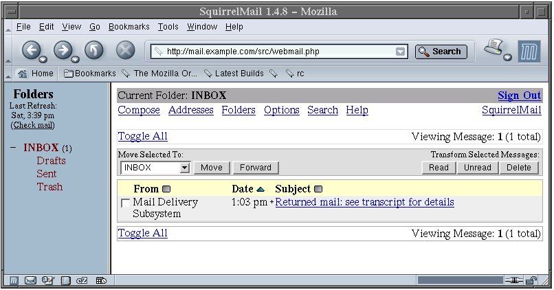 日本語化以前の mail/squirrelmail を使うと、文字が化けてしまいます。